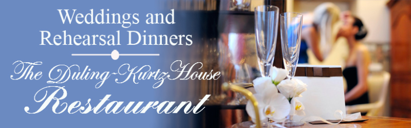 The Duling-Kurtz House is the ideal setting for social events, especially weddings and rehersal dinners. The Inn's structure is classically beautiful and inviting. The dining rooms inside are gracious and distinctively decorated.